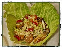 A tálban volt kelkáposzta, főtt gesztenye darabolva, narancs, piros kaliforniai paprika, só, cukor, némi almaecet, és még olívaolaj illatát is lehetett érezni. Már éppen kikepesztetett a salátából, de ekkor az óriás viharzott be az ajtón. Felkapta a tálat, és bevitte magával a nappaliba.