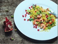 Az asztalon először egy hegynyi fura színű macaron mellett haladt el, majd egy másik tál vonta magára a figyelmét: kurkuma illat lengedezett körülötte.