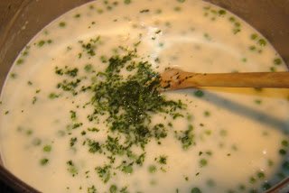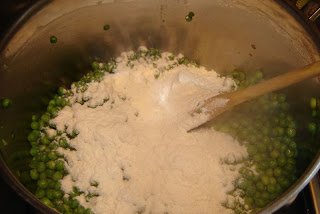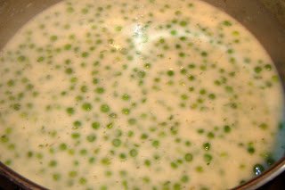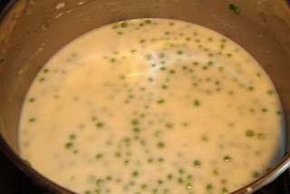 A receptben csak annyi a hiba, hogy a keményítős tejet persze csak akkor keverem bele, ha már a borsó puha, de annyira rövid idő alatt elkészül, hogy remélem ezt a nyelvbotlást megbocsájtjátok!