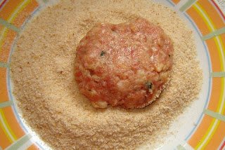 A két tenyerünk között formázzunk a masszából nagyjából kerek formákat, és mindkét oldalukat forgassuk zsemlemorzsába.