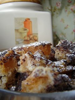 Az általános verzió esetében a vaníliás tejben megfürdetett kiflikarikákat rétegezik porcukros-citromhéjas mákkal. Én most, hogy ne legyen már olyan egyszerű, “vékony” vaníliapudingot főztem (vagyis nem túl sűrűt, olyat, mint a palacsintatészta), azzal öntöztem meg a kiflit.