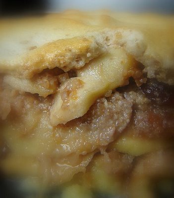 A tojásokat szétválasztottam, a sárgáját összekevertem a cukorral és a tejjel. Ebbe forgattam bele a kb. egy centi vastagra vágott zsemleszeleteket, majd szorosan leraktam ezekből egy sort (a zsemlék felét) egy kivajazott közepes tepsibe. Megkentem a lekvárral, megszórtam a cukros dióval, ráraktam a párolt mazsolás alma felét; ezután újabb áztatott zsemle-sor, lekvár, dió, alma-réteg következett, és ekkor 20 percre betoltam a 200 fokos sütőbe. Felvertem a fehérjéket, beletettem a maradék baracklekvárt és a diót is, majd rásimítottam a rakás tetejére, és még vagy negyedórán át hagytam, hadd kapjon egy kis színt a teteje.