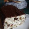 Kivajaztam a nem egészen kuglófformámat, és szórtam bele egy sort a kockákból, majd elterítettem rajta a krém felét. Újabb sor jött, újabb adag krém, és a végén elosztottam a maradék kockákat.