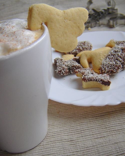 A cukrot jól elkevertem a vajjal, hozzáadtam a tojást és tejet, majd beleszitáltam a sütőporral elvegyített lisztet. A két csészényinél jóval több kellett, amint ezt jeleztem is a felsorolásnál. Jól gyúrható tésztát kaptam, amit azonnal kinyújtottam és szaggatni kezdtük a gyerekekkel közösen. 180 fokra előmelegítettem a sütőt, és tíz perc alatt megsütöttem a kekszeket. Jórészüket olvasztott csokiba mártottuk, majd kókuszreszelékbe forgattuk.
