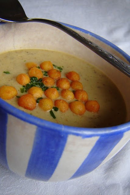 A képen látható bögre a kedvenc “levesescsészém”. Még nászajándékba kaptuk, tehát lassan tizenöt éves lesz. Hat volt összesen, ma már csak ez az egy van. Ahogy legjobban szeretem használni: belemerem a jó meleg levest, megszórom ezzel a ropogós levesgyönggyel, belekucorodom egy fotelba, és miközben eszem, valami kis litty-lötty filmet bambulok. Majdnem úgy kikapcsol, mint egy jó kis kávézás.