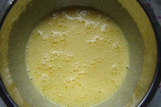 A tojásokat pár perc alatt habosra kevertem a cukorral.