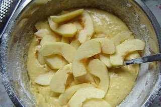 Két fél almát felszeleteltem, és a masszába kevertem.