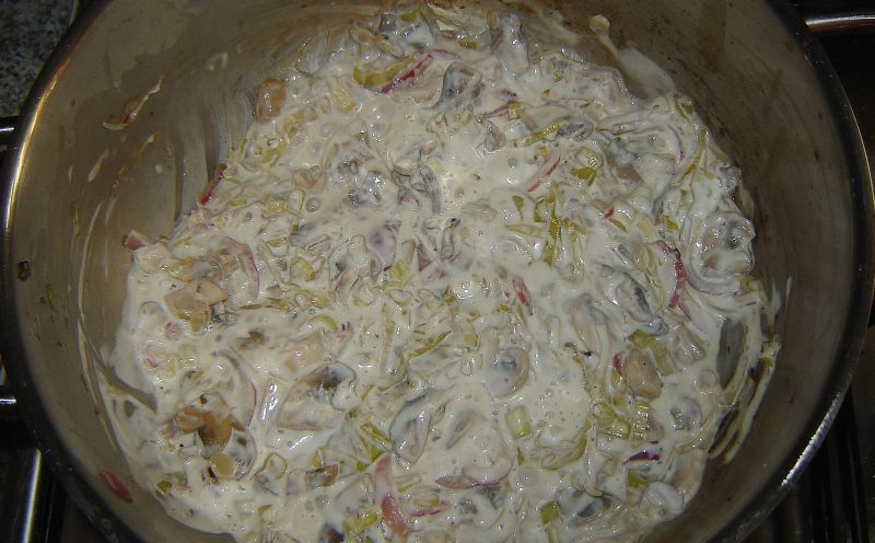 Amikor ez megtörténik, belekeverjük a tejfölt, és elzárjuk alatta a lángot.