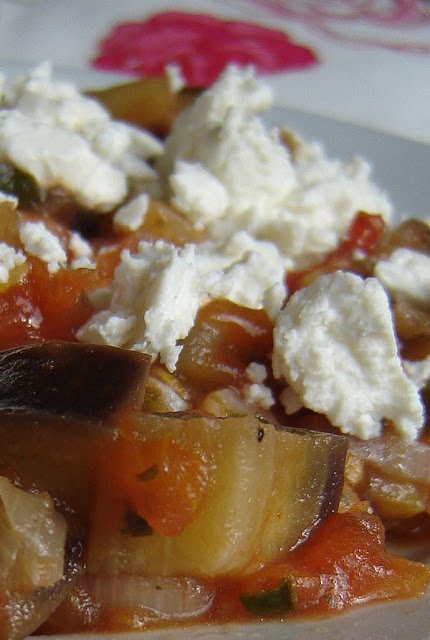 Apróra vágom a bazsalikomot, és ezt is hozzáadom. Lefedve párolom addig, amíg a padlizsán meg nem puhul. Tálaláskor megszórom feta sajttal.