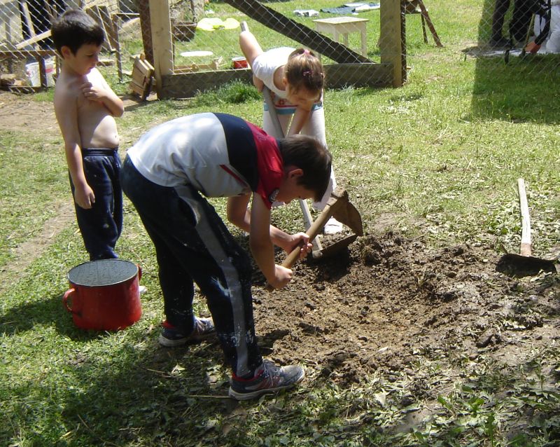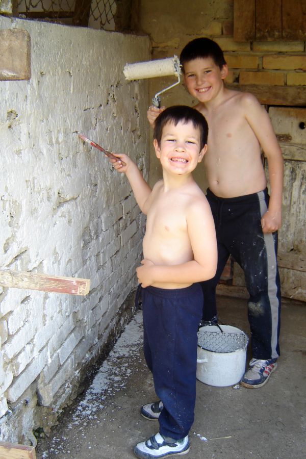 Ezalatt elöl szintén komoly munka folyt. Voltak, akik a leendő tyúkólat készítették elő (meszeléssel); kisebbek…