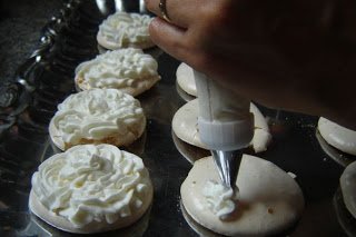 Hagytam, hogy kihűljenek, mire ez megtörtént, teljesen roppanósak lettek. Közben felvertem a a tejszín felét a cukorral (mivel a habcsók-mennyiségnek is csak a fele volt ez még).