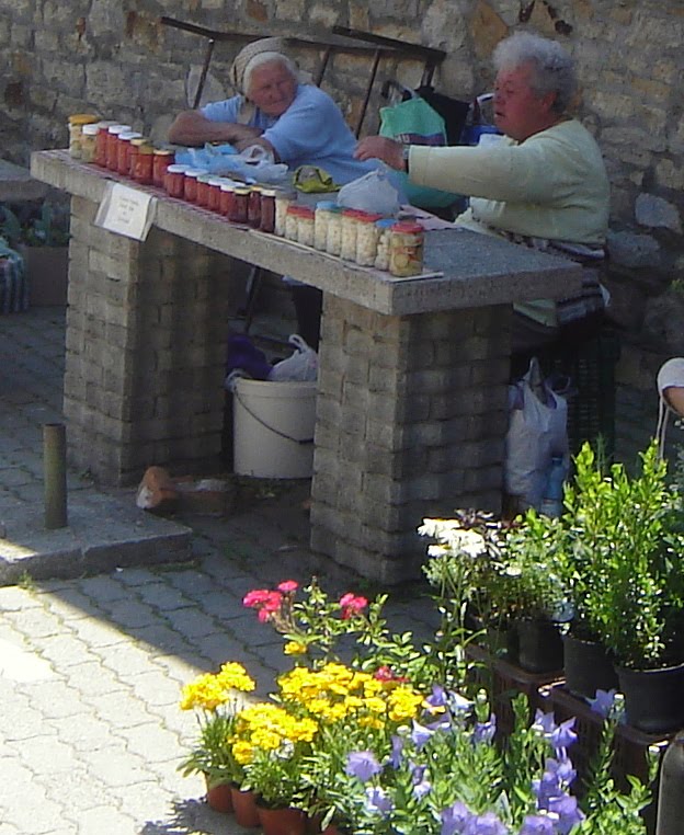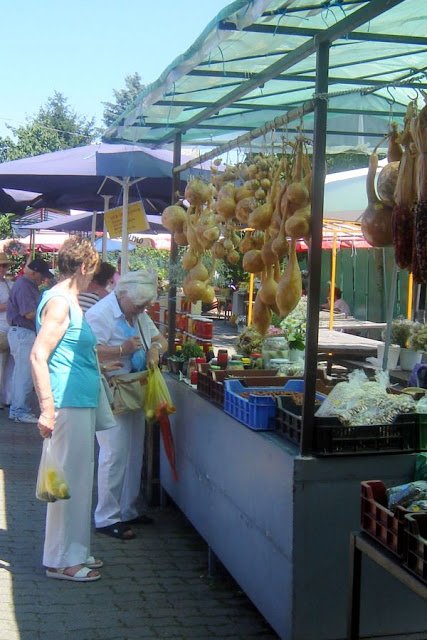 A keszthelyi piac szerdán és szombaton telik meg, a többi napon csak úgy pianóban működik – de a mézesek, és néhány zöldséges akkor is kint van. A két piacnapon viszont a környező falvakból jönnek a nénikék, bácsikák, hozzák a sóskát, spenótot, a tököket, sáfrányt kis befőttesüvegekben, virágcsokrokat, cserepes növényeket, tojást, savanyúságot, lekvárokat, pirospaprikát, diót, ezt-amazt. Némelyik igen leleményes, és csak otthon, némi fejszámolás után jövök rá, hogy bizony jól megkérte az árát a holmijának. De vannak olyanok, akikhez odaszoktam, és már ismerősként üdvözöljük egymást – miért is ne, hiszen hetente, kéthetente találkozunk.