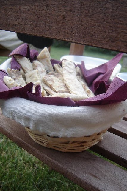 Akkor jó, amikor a tésztán barna pöttyök keletkeznek. Ezután pizzavágóval 2 cm széles csíkokra vágtam a lepényeket, és mártogatós szószokhoz kínáltam.