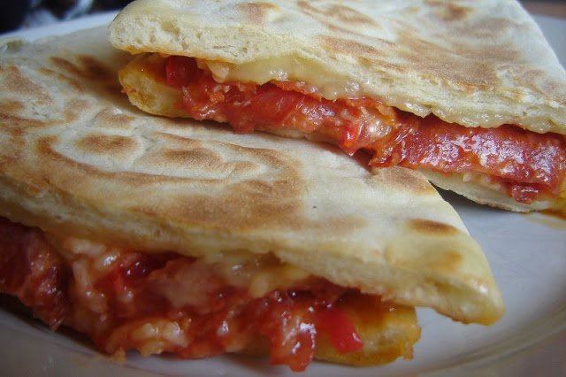 Tudom, sütit ígértem mára, de családilag teljesen rákattantunk a töltött lepénykenyérre, úgyhogy most előbb ezt mutatom meg. Egyik este, amikor épp nem volt itthon kenyér, ám a mártogatóshoz készített lepénykenyér tésztájából néhány adag várakozott a hűtőben, akkor jutott eszembe, ha a serpenyőben, megfordítás után megpakolnám a lepénykenyeret, majd félbehajtanám, és a másik felét már így sütném meg…hmmm…, az biztos finom lenne. Azóta utánanéztem, persze, hogy az olaszoknál ez már ezer éve létezik, piadinának hívják.