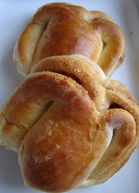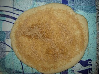 A gombócokat aztán kissé ovális formára nyújtottam (kb 15 cm volt a hossza), majd megkentem olvasztott vajjal, és megszórtam fahéjas kristálycukorral.