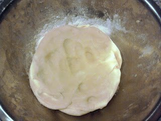 Adjuk hozzá a vizet és az ecetet, gyúrjuk össze a tésztát. Jó kemény legyen, de ha nem akar összeállni, óvatosan adagoljunk hozzá még egy kevés vizet. Ha megvagyunk, tegyük a tésztát hűtőbe. Amíg a tészta hűl, készítsük el a krémet, amivel tölteni szeretnénk majd – én ezúttal is a múltkori sajtos roló krémjét használtam annyi különbséggel, hogy tíz deka apróra vágott sonkát is kevertem hozzá.