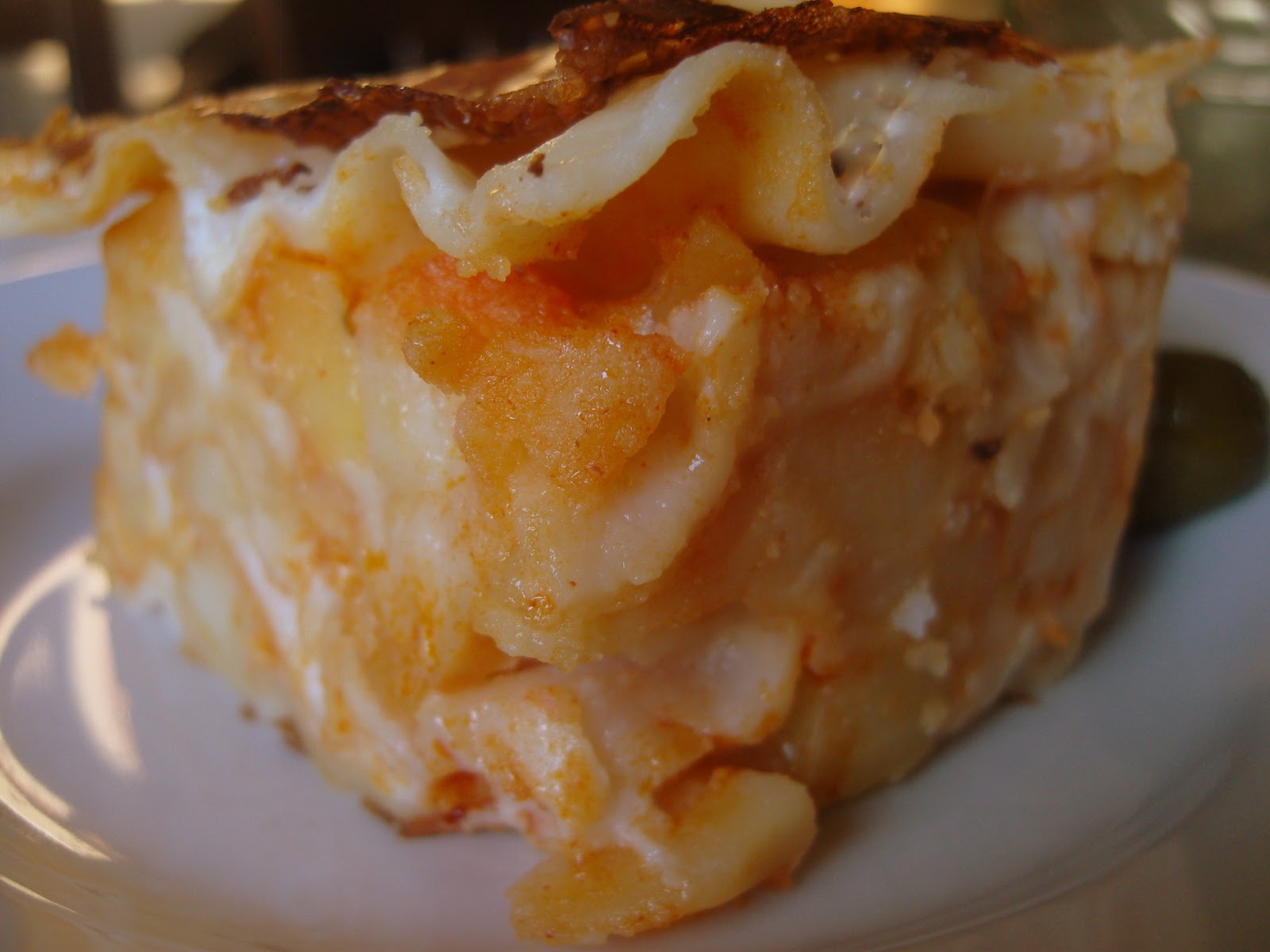 És óriási felfedezésre jutottam: a krumplistészta lasagneként elkészítve fantasztikus! Nem mondom, hogy én sütöttem a világon elsőként, de próbáltam felkutatni a neten, és sehol sem találtam ilyet. Olyat igen, hogy valaki a kockatésztát helyettesítendő lasagne tésztát tört darabokra.