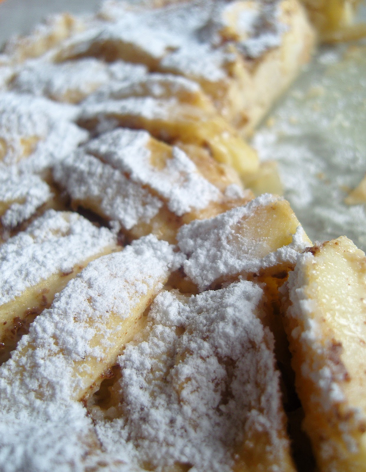 Előrebocsátom, a képeken a legutóbbi, mai verzió szerepel, amit kísérletképpen majdnem dupla mennyiségű almával készítettem. Nagy alma fanoknak ajánlom, akik meg inkább az édes krémes tésztáért vannak oda, maradjanak az alább megadott mennyiségnél.