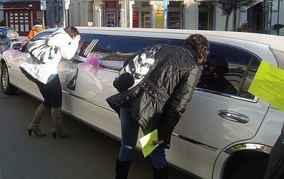 A helyszín, vagyis a színház előtt exkluzív esküvői járműveket állítottak ki, szépen feldíszítve, ahogy kell.