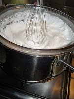 No, de nem rohanunk előre, a lényeg, hogy a három fehérje és tíz deka cukor a vízfürdőbe állított jénaiba kerüljön, a víz forrjon alatta, és mi gépi vagy kézi habverővel verjük kemény habbá. Vegyük ki a tálat a vízfürdőből.