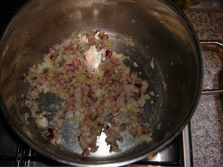 Mi is hasonlóan készítjük. Szalonna és hagyma,borsó óne,de sok-sok fokhagyma és bors. És több pirospaprika,hogy szépen megszínezze még a krumplit is mikor összekeverem. Imádom!