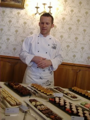 Miután mindenki elfogyasztott egy tányérdesszertet (én a már említett fantasztikus Valrhona csokitortát), Kolonics Zoltán, a ház főcukrásza ismertette a sütemény-kínálatot, amelyet egy-két falatnyi adagokban kóstolhattunk meg. Sajnos, nem tudtam annyit, amennyit szerettem volna. Ott volt a az rengeteg fiomság – narancsos karamelltorta, Esterházy-torta, bazsalikomos citromtorta (döbbenetesen jó), macaronok, dobos torta, robbanócukros csokis kocka, és még sok minden, én pedig csak vártam és vártam, hogy múljon az idő, és legyen hely a gyomromban még néhány csábító falatnak. Nem lett.