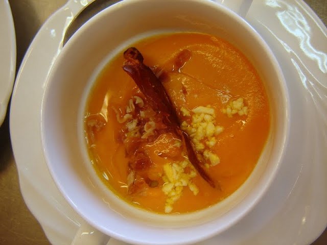 A fokhagymás paprikás leves fantasztikus; olívaolajon kissé megpirított fokhagymát marhalábszár csontból, sonkalével készült alaplével öntötték fel, és ezt a levest darabolt szikkadt fehérkenyérrel sűrítették.