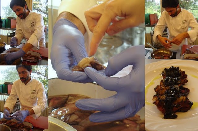 | A tintahal tisztítása, és a végén a belőle készült étel. |