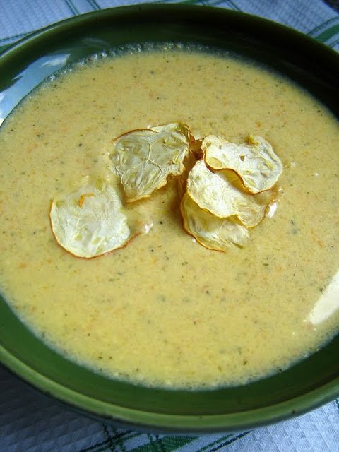 Ismét felöntöttem annyi vízzel, amennyi ellepte, majd botmixerrel pürésítettem az egészet. Hozzáöntöttem a tejszínt, egyet forraltam rajta, és készen is volt. Kicsit utánaízesítettem, fél citrommal savanyítottam, és tálaltam. A tetejére tettem a ropogós cukkinikarikákból, de mint fentebb mondottam, ez felesleges sznobizmusnak bizonyult. Maradt a levesgyöngy.