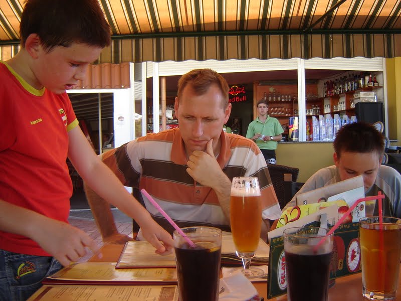 A fiúk pizzát ettek, mi ketten Nonóval salátát. És most megkóstoltam a kávét is, az is nagyon finom: Manuel.