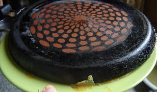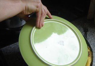 …majd ráhelyezzük a palacsintasütőt így, ahogy a képen látható, alulról szorítjuk rá a tányért…