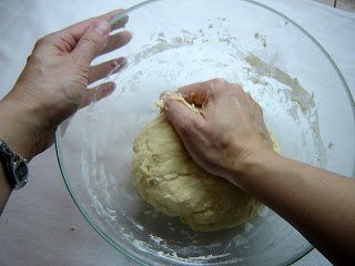 A lisztet kimértem egy tálba, élesztőt felfuttattam cukros tejben, ahogy kellett, majd a liszthez öntöttem, Hozzáadtam a lágy vajat, meg a többi hozzávalót, és összegyúrtam a tésztát. Duplájára kelesztettem. Aztán átgyúrtam, három részre szedtem.