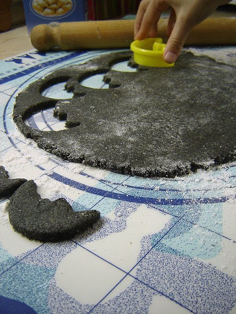 A hozzávalókat egészen egyszerűen összegyúrjuk, majd porcukorral szórt gyúrólapon/deszkán jó fél centi vastagságúra nyújtjuk.