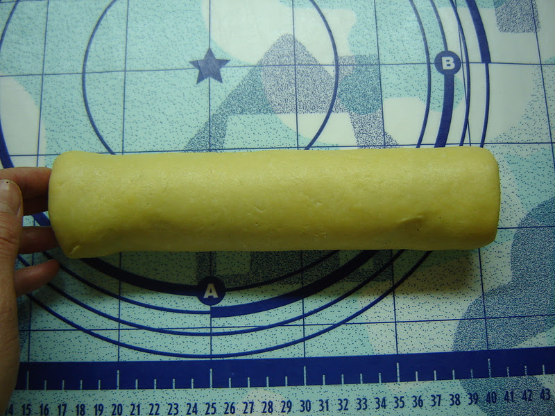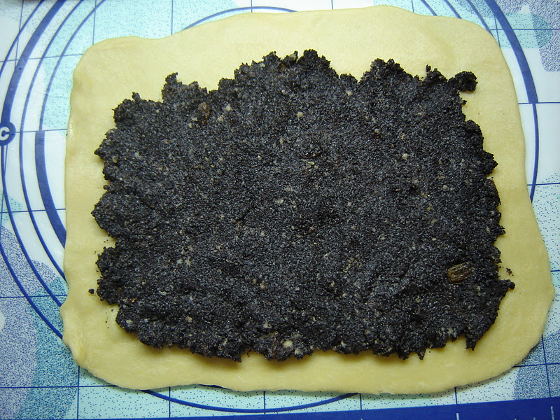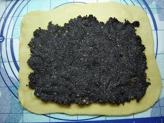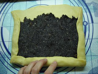A képen látható módon elrendezem rajta a máktöltelék felét.