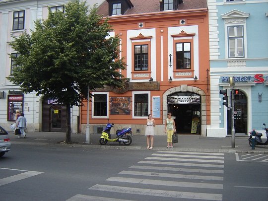 Már csak egy hely maradt: a Harrer cukrászda, tartva a cikk-cakk ütemet, és letérve a Várkerületről a Színház utcába. Ide is érdemes betérni kávéra, sütire.