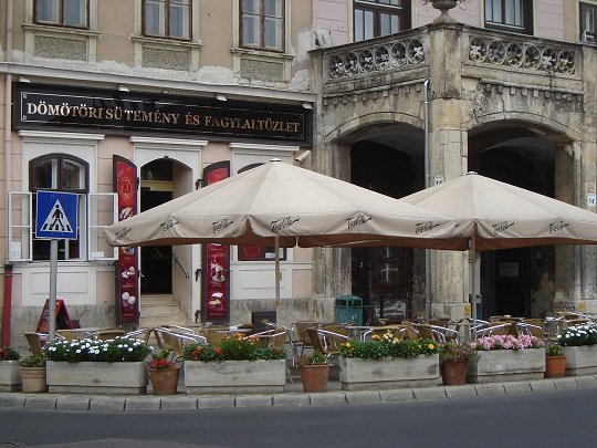 Kiértünk a Széchenyi térre. Állítólag itt kapható a város legjobb fagyija, a Dömötöri fagyizóban.