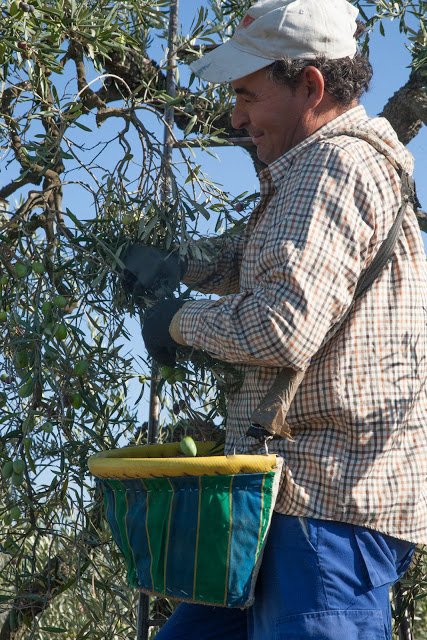 A szüret maga is érdekes; nem úgy van ám, hogy a fa alá terítenek egy hatalmas hálót, aztán jól lerázzák a bogyókat… Nem, mert akkor megnyomódnak, sérülnek. Így csak akkor járnak el, ha kimondottan olajnak szüretelnek. Ha asztali lesz a bogyó, akkor azt csakis kézzel szedik.