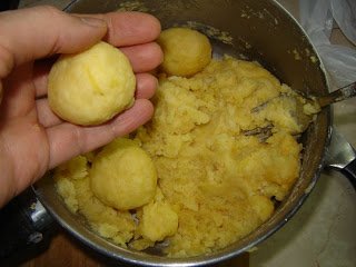 Nos, közben puha lett a krumpli, öntsük le róla a vizet a levesbe, krumplinyomóval törjük át, és hagyjuk kicsit hűlni. Amikor már nem forró, keverjük bele a lisztet, a tojást és a sót. Formáljunk a masszából gombócokat, és dobáljuk a levesbe. Amikor a gombócok feljöttek a víz tetejére,még egy percig forrjon a leves, aztá zárjuk el alatta a lángot.