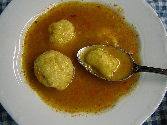 Anyukám zöldséglevest dúsított gombóccal. A krumpli főzőlevével öntötte fel. A kimaradt gombóctésztát pedig kisütötte.