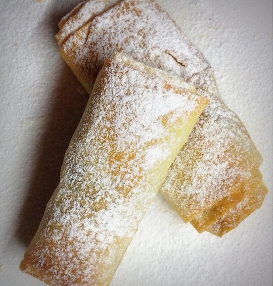 Stahl Judit Gyors édességek című könyvéből vettem az ötletet, mert tényleg nem volt kedvem sütivel pepecselni a konyhában. Az elhatározástól a sütő lekapcsolásáig fél óra telt el, úgyhogy nincs okom panaszra. Csodás fázisfotókat készítettem, hogy ne kelljen magyaráznom semmit, de valamiért nem lehet a fényképezőgépről átmásolni a képeket a számítógépre… Úgyhogy a kész tekercseket újra lefotóztam telefonnal, de a fázisokat nem tudtam megismételni.