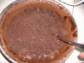 A krémbe keverjük bele a tészta “hulladékát”, valamint a konyakot és a lekvárt.