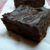 175 fokos sütőben pontosan 43 perc kell az ideális állag eléréséhez. Ne ijedjetek meg, ha esetleg tűpróbát végeznétek (feleseleges, egyébként), és nyersnek találnátok a tésztát: első alkalommal, amikor ezt sütöttem, teljesen kétségbeestem, hogy még 50 percnél is úgy tűnt, ez nem sül meg soha az életben. Ki kell venni 43 percnél, és megvárni, amíg kihűl: időközben megszilárdul a tészta, és tökéletes lesz. Szaftos, csokis, diós – mint egy brownie.