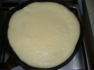 Kevés vajon (1-2 dkg) elkezdjük sütni a tojáshabot – úgy osszuk el, hogy elég legyen négy lepényre. De a serpenyőnk, és persze a tojások méretétől függően többre is elég lehet.