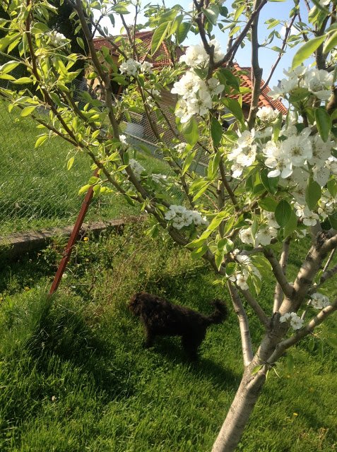 Bogyó is élvezi az új helyet, birtokba vette az udvart.