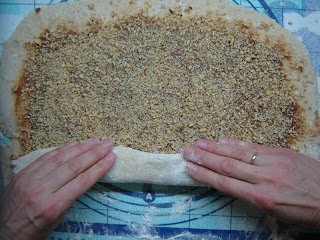 Kinyújtom a tésztát kb. 40×25 cm-s téglalapra.