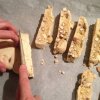 5. Hagyjuk hűlni a masszát, majd habzsákból sütőpapírral borított tepsire nyomjunk különböző formákat: karikákat, fenyőfákat, szíveket, sőt, akár neveket a csillagcsövön keresztül.