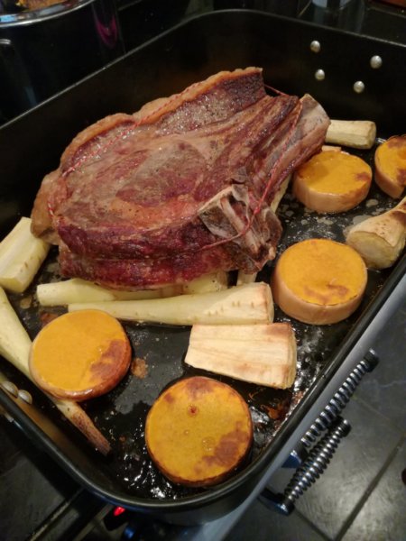 Na persze, a marhasült, amivel ezen a vasárnapon ettük a Yorkshire puddingot, az is megérne egy misét… Amikor Chris elővette a húst a hűtőből, majd’ a szívemhez kaptam, olyan gyönyörű volt. Egy közeli farmon vette, 30 napig érlelték.