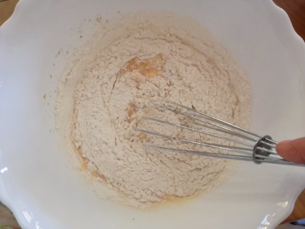 3. Hozzáadjuk a lisztet, és gyorsan csomómentesre keverjük.