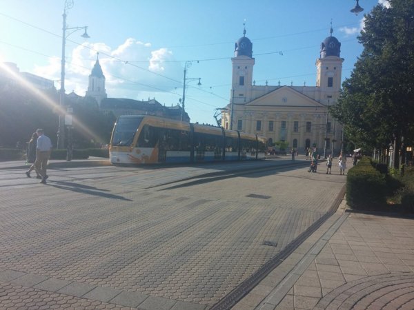 A Kossuth téren, háttérben a Nagytemplom.![]()
