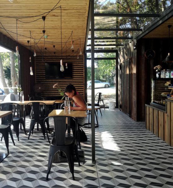 Éppen csendes időszakban sikerült érkeznem, így alkalmam nyílt egy kis beszélgetésre a személyzettel, akiktől megtudtam, hogy a tulajdonos a konténerek kreatív hasznosításával foglalkozik – ez a kávézó valójában prototípus, a The Rusty coffee box hálózat első tagja. A konténerek alternatív használatának egyébként világszerte egyre nagyobb a divatja, készítenek belőle házat, éttermet, növényházat, meg még ki tudja, mi mindent.